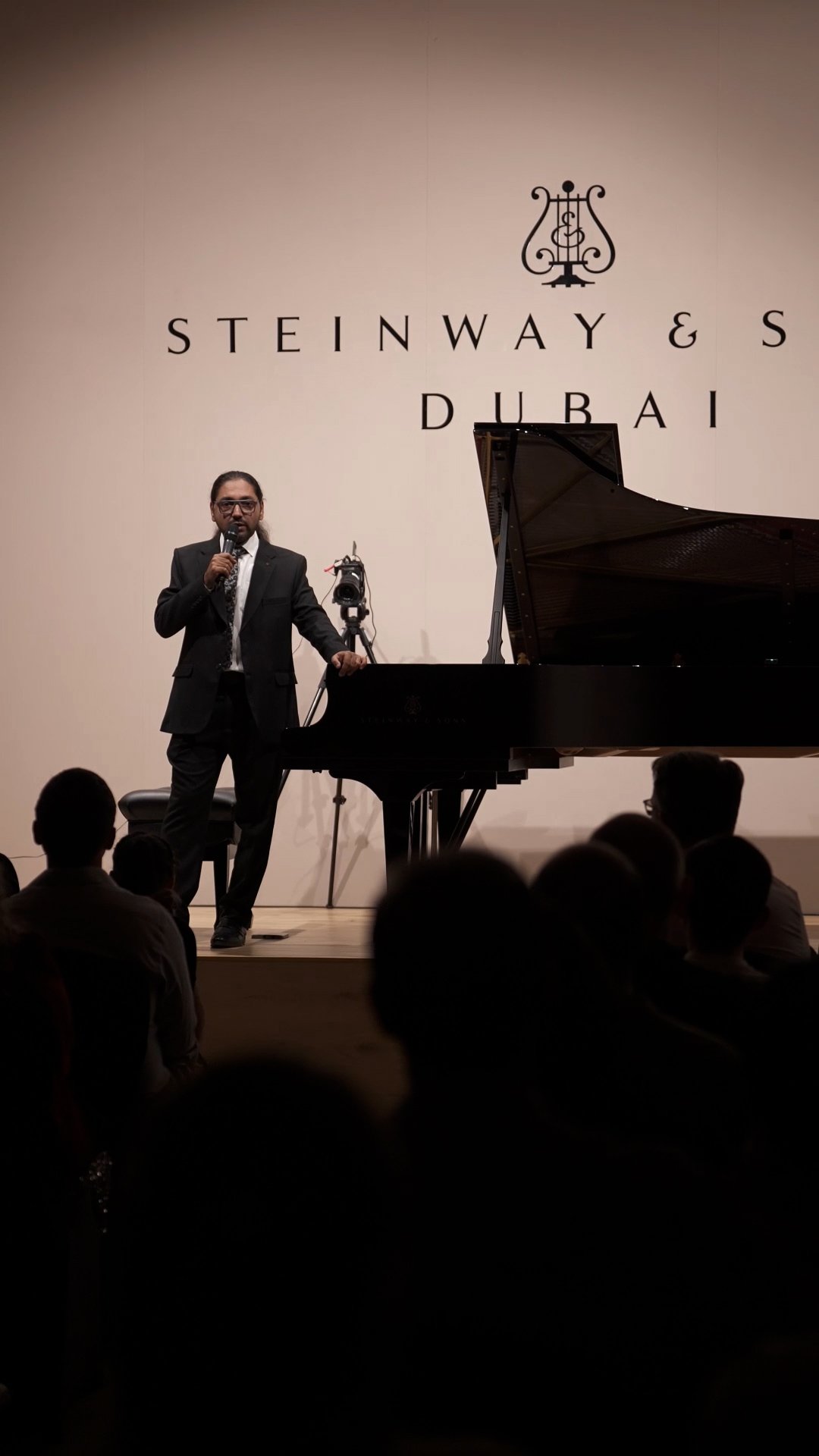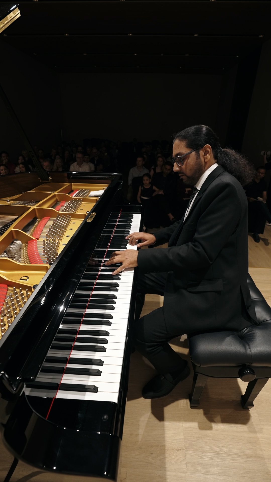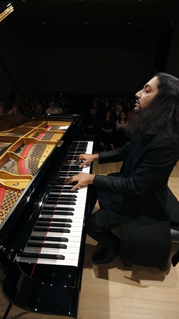 His performances move between the great works of the piano repertoire and his own original compositions, creating a distinctive artistic voice shaped by both worlds.